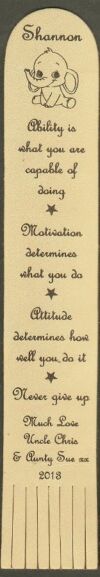 Personalised Leather Bookmarks with inspirational quotes. We can engrave your favourite quote along with an image of your own choosing/suggestion.