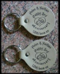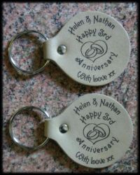 Personalised and engraved leather keyfobs /keyrings in our most popular set designs.