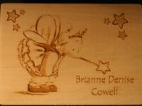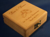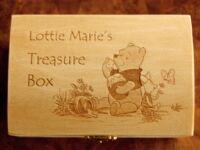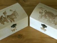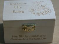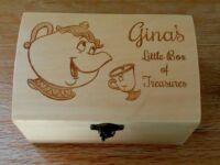 These can be engraved to your own design ideas, or ours. Some ideas are shown in the gallery below. Can be gifted as Jewellery Boxes, Keepsake boxes, Children’s Treasure boxes or Tooth Fairy, First curl boxes. You might want to have your child’s artwork reproduced on a trinket box, or have baby hand and footprints on a Keepsake Box. Some of these won’t be in the shop but just contact us to see what we have in stock.